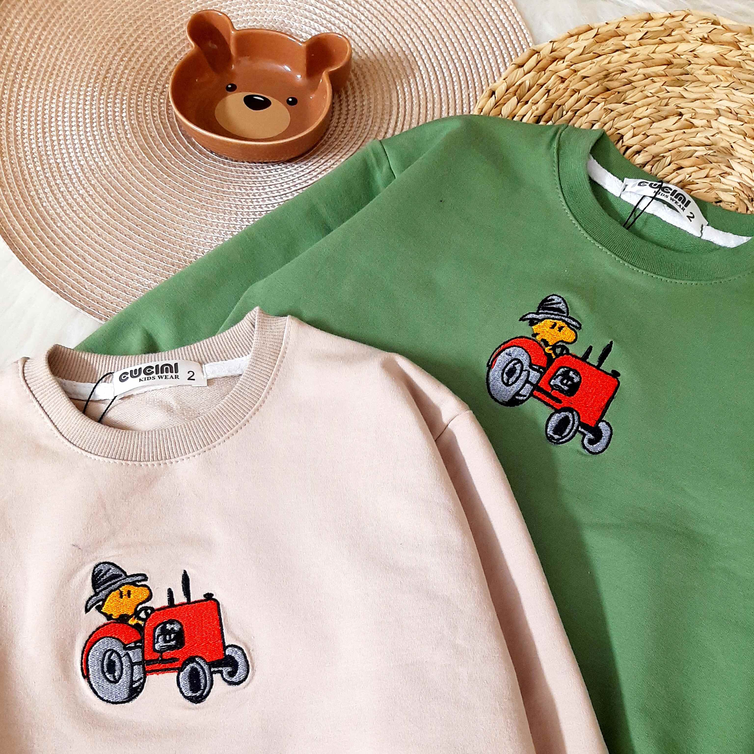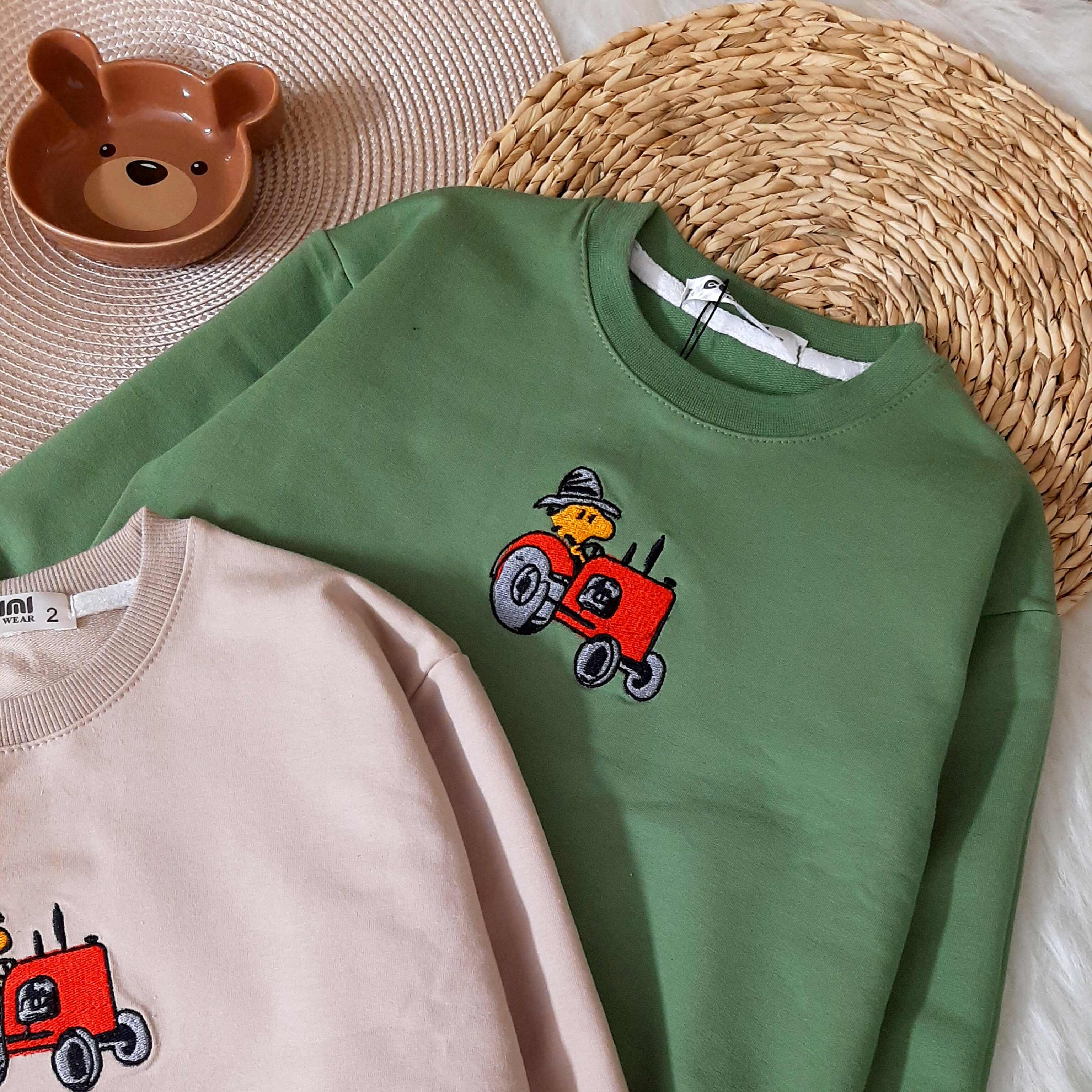 جنس دورس دونخ تیپ لاکرا ، قواره باکسی ، مناسب ۱ تا ۷ سال ، طرح تراکتور گلدوزی شده با کیفیت