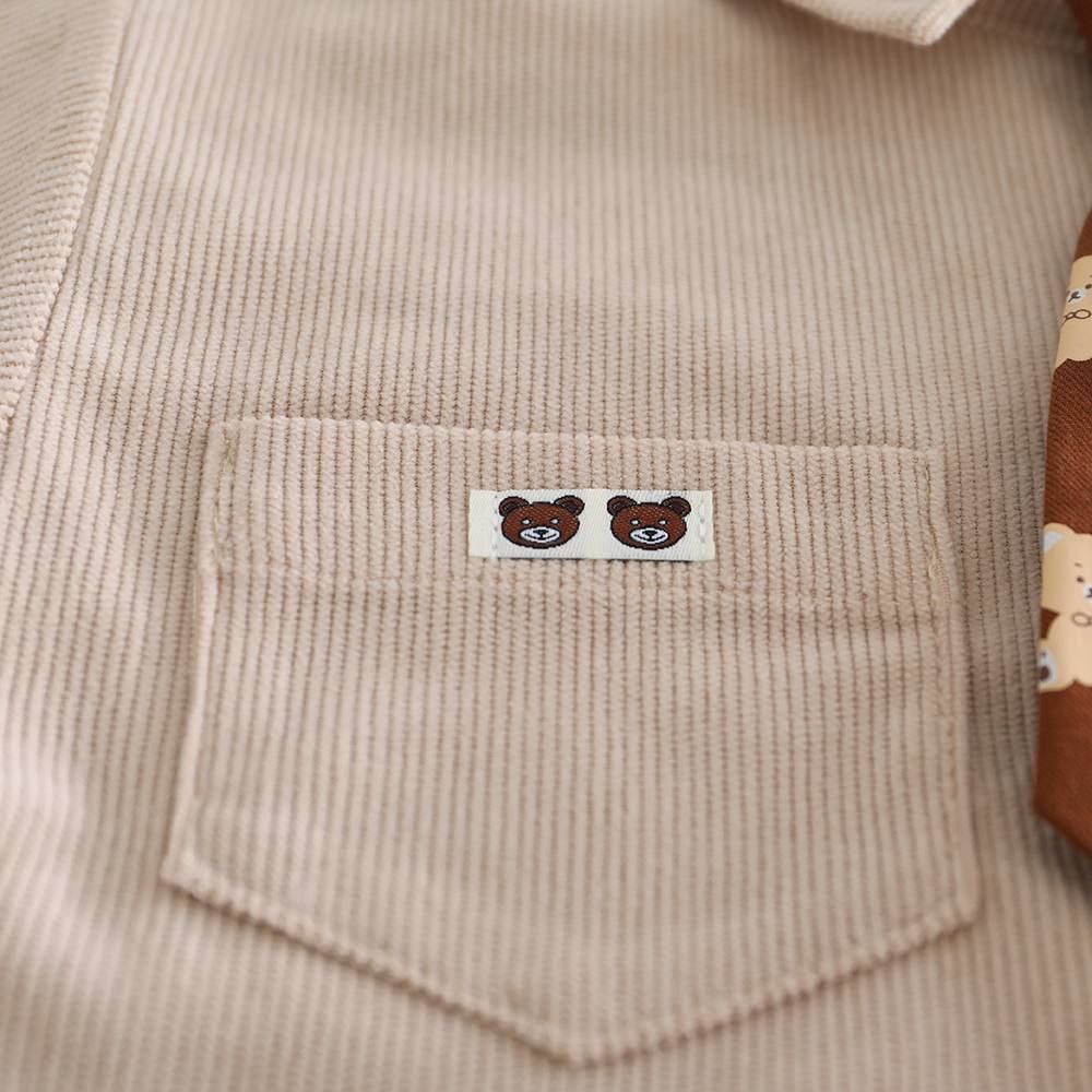 ست فانتزی و مجلسی پسرانه - مناسب زیر 1 سال تا 5 سال - با کراوات کیوت خرسی - جنس پیراهن کبریتی - جنس شلوار کتان
