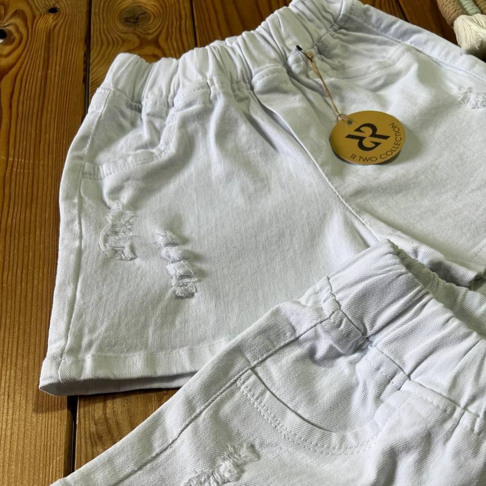 کمر کش ، جنس جین سفید سنگشور شده ، اسپرت دخترانه و پسرانه ، مناسب ۲ - ۷ سال