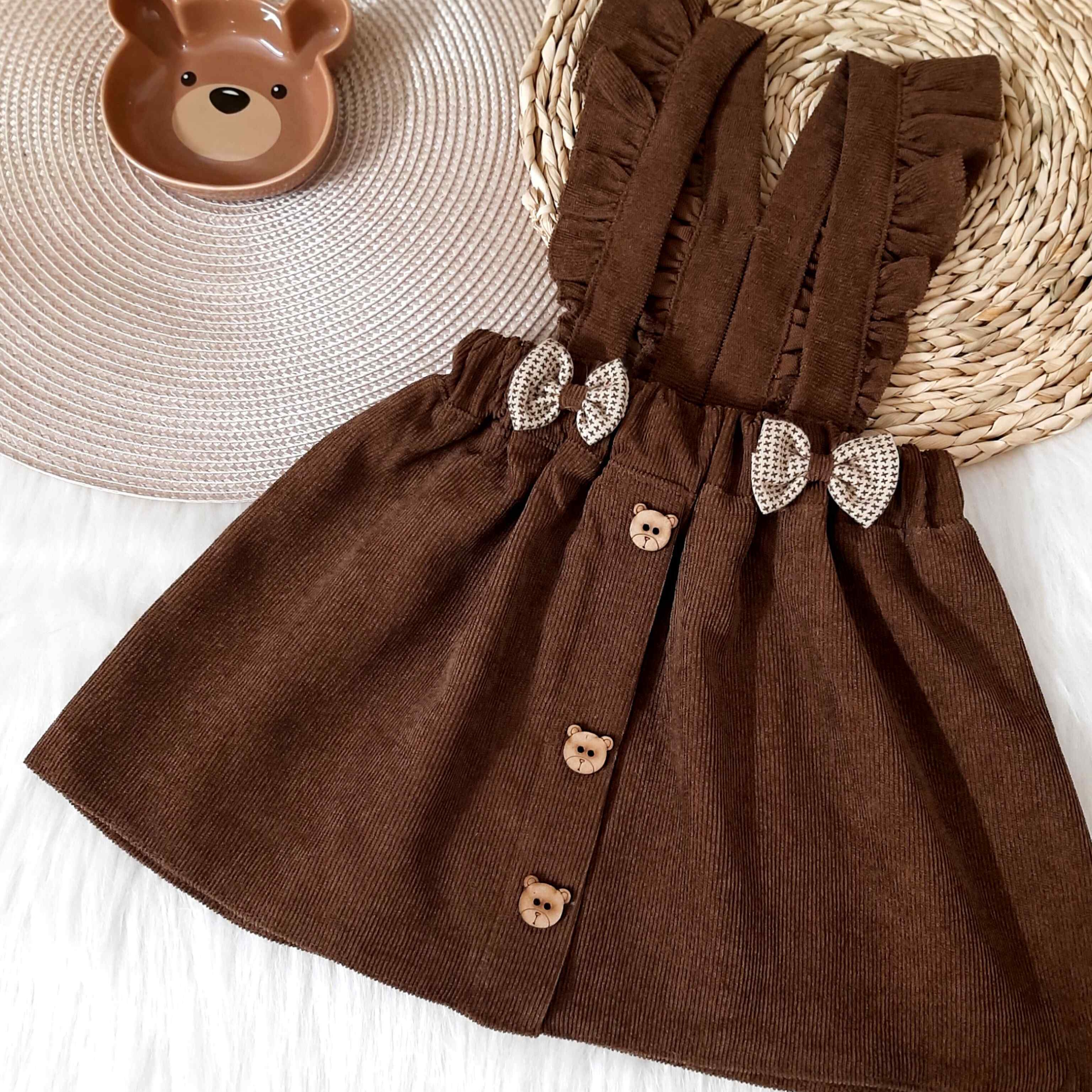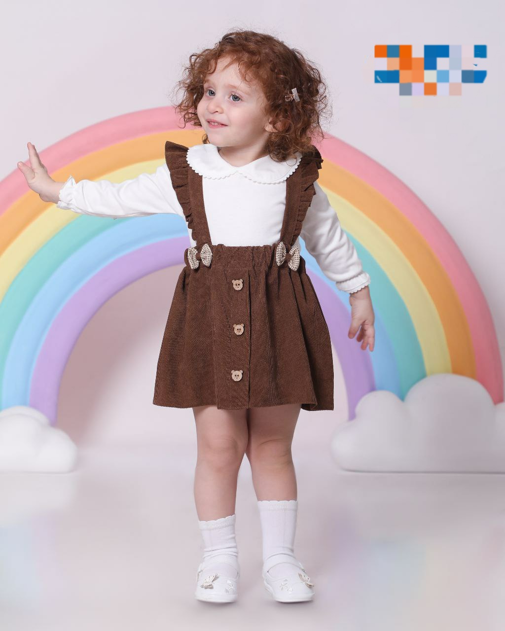 دو تکه شامل بلوز و سارافون - جنس بلوز پنبه - جنس سارافون مخمل کبریتی ریز - مناسب ۱/۵ - 3 سال